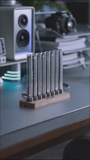 • A built-in high-sensitivity microphone pickup module can effectively capture sound. It adopts 8 glass tubes, each with 23 LED lamp beads, and has 41 display modes, which can display sound signals with a frequency of 50-12000HZ. The visual music is flexible, and the bouncing LED-colored lamp beads are very gorgeous as a desktop decoration.